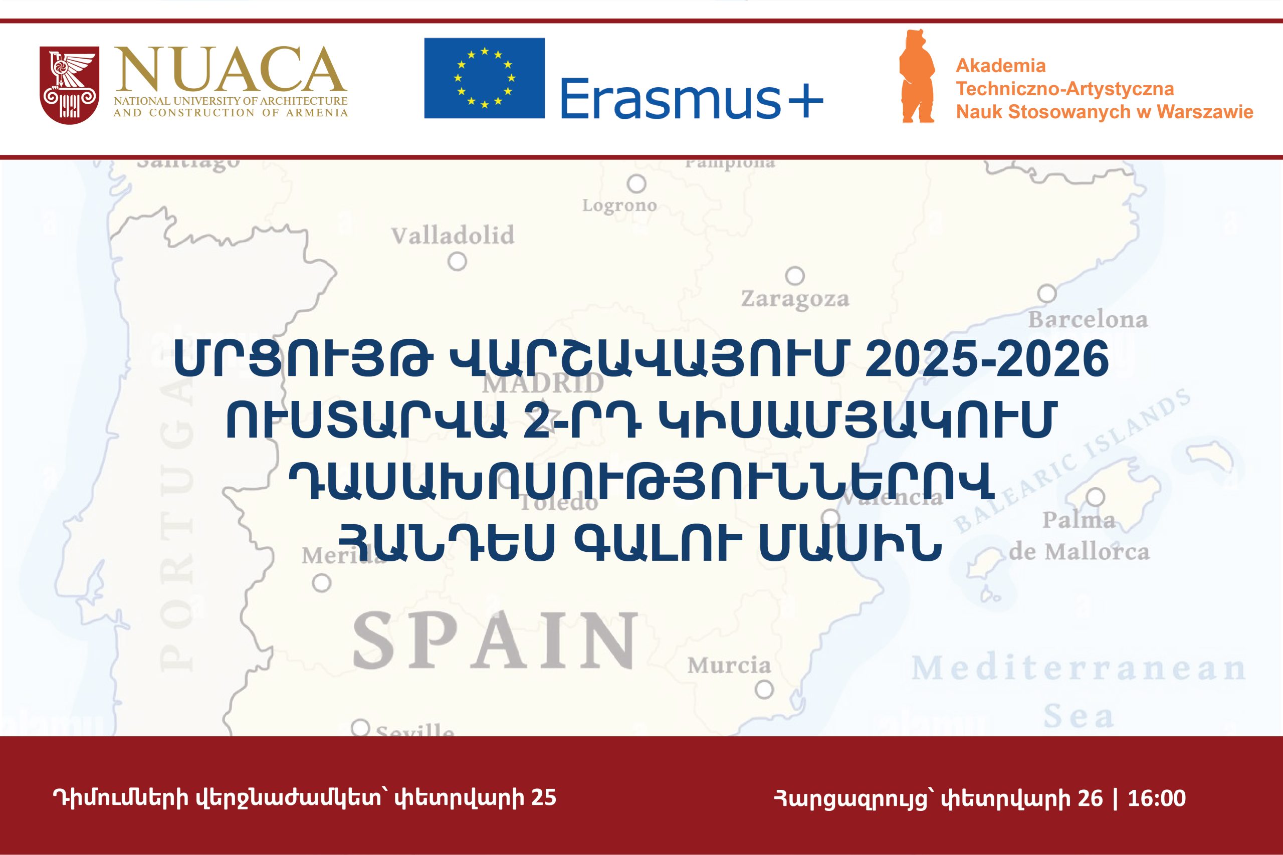 Սիրելի՛ ուսանողներ, տեղեկացնում ենք, որ 2026 թվականի փետրվարի 11–12-ին