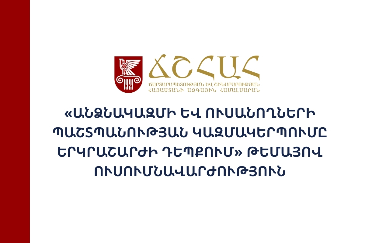 Հարգելի՛ համալսարանականներ, համաձայն Ճարտարապետության և շինարարության Հայաստանի ազգային համալսարանի 2025 թվականի հիմնական միջոցառումների պլանի, դեկտեմբերի 10-ին ժամը 16:30-ին համալսարանի ռեկտոր պարոն Բարսեղյանի ղեկավարությամբ կանցկացվի «Անձնակազմի և ուսանողների պաշտպանության կազմակերպումը երկրաշարժի դեպքում» թեմայով հատուկ տակտիկական ուսումնավարժություն: