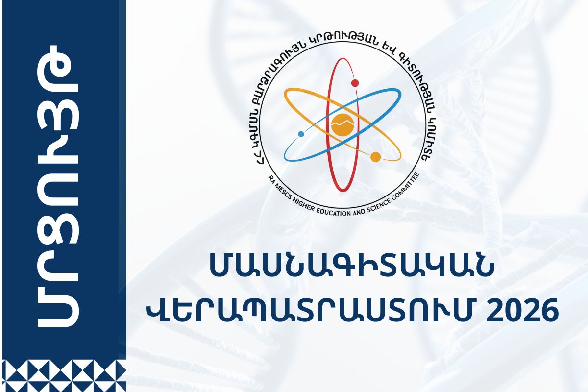 Մեկնարկել է «Մասնագիտական վերապատրաստում 2026» մրցույթը, որը նպատակ ունի մեծացնել բազային ֆինանսավորմամբ ծրագիր իրականացնող կազմակերպության գիտական ներուժը, հետազոտողներին ընձեռել արտերկրի լավագույն գիտական կազմակերպություններում և բուհերում վերապատրաստվելու հնարավորություն, օգտագործել և փոխառել գիտահետազոտական գործունեության մեջ առաջատար երկրների փորձն ու հմտությունները, նպաստել հետազոտողների ինտեգրմանը միջազգային հետազոտական տարածքում, ներգրավել Սփյուռքի գիտական ներուժը:
