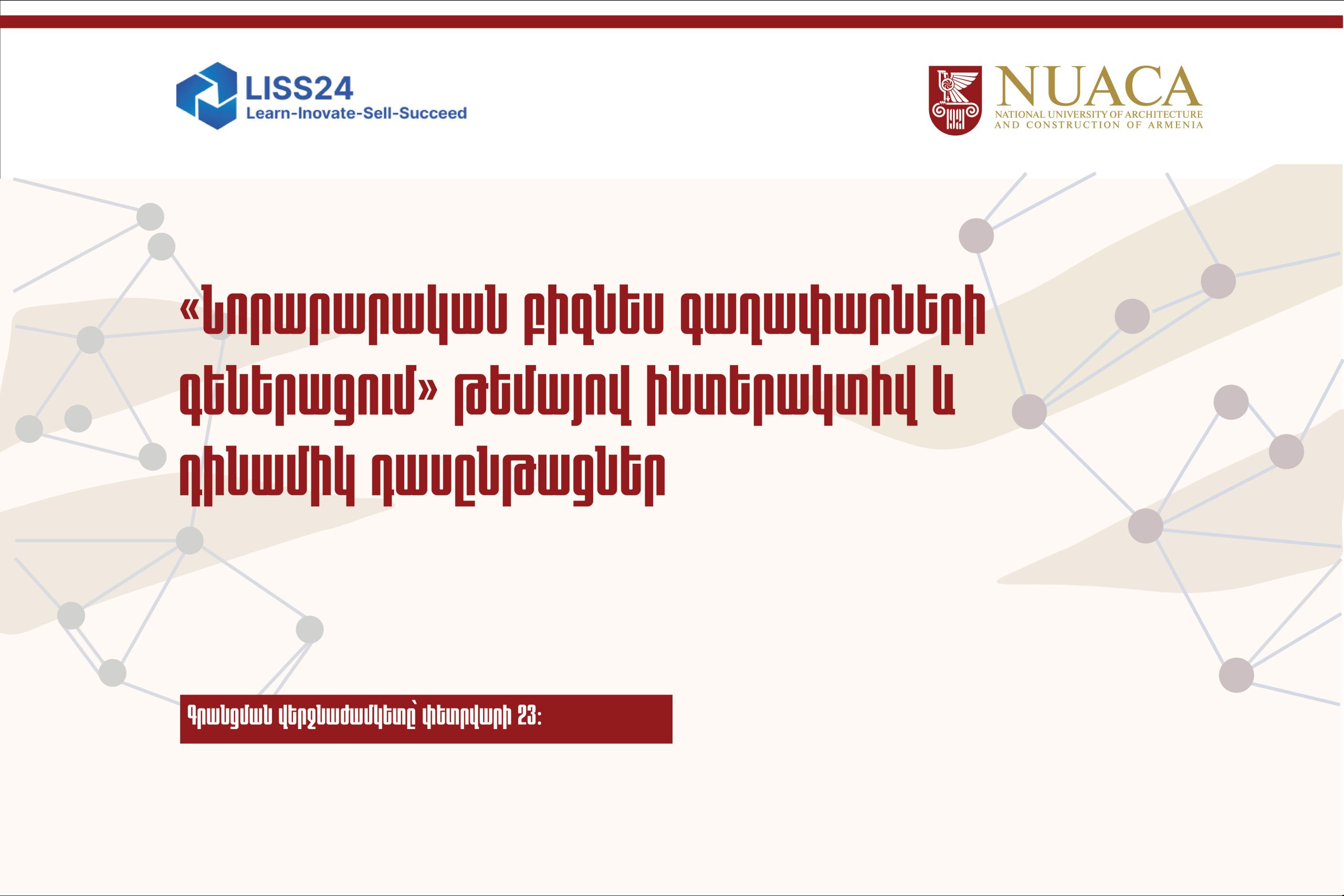 Սիրելի՛ ուսանողներ, տեղեկացնում ենք, որ ՃՇՀԱՀ-ը Էրազմուս+ LISS24 նախագծի շրջանակում հրավիրում է ձեզ մասնակցելու ինտերակտիվ և դինամիկ դասընթացների շարքին՝ «Նորարարական բիզնես գաղափարների գեներացում» թեմայով։
