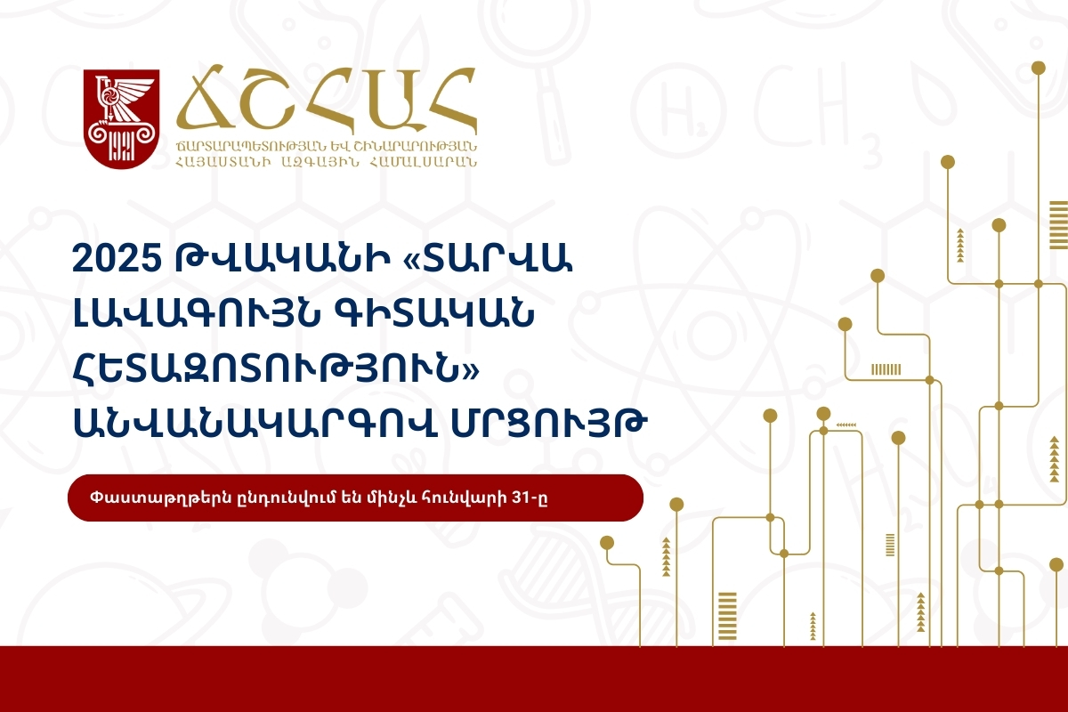 Ճարտարապետության և շինարարության Հայաստանի ազգային համալսարանը հայտարարում է 2025թ. «Տարվա լավագույն գիտական հետազոտություն» անվանակարգով մրցույթ.