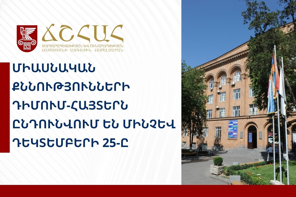 ՄԻԱՍՆԱԿԱՆ ՔՆՆՈՒԹՅՈՒՆՆԵՐԻ ԴԻՄՈՒՄ-ՀԱՅՏԵՐՆ ԸՆԴՈՒՆՎՈՒՄ ԵՆ ՄԻՆՉԵՎ ԴԵԿՏԵՄԲԵՐԻ 25-Ը