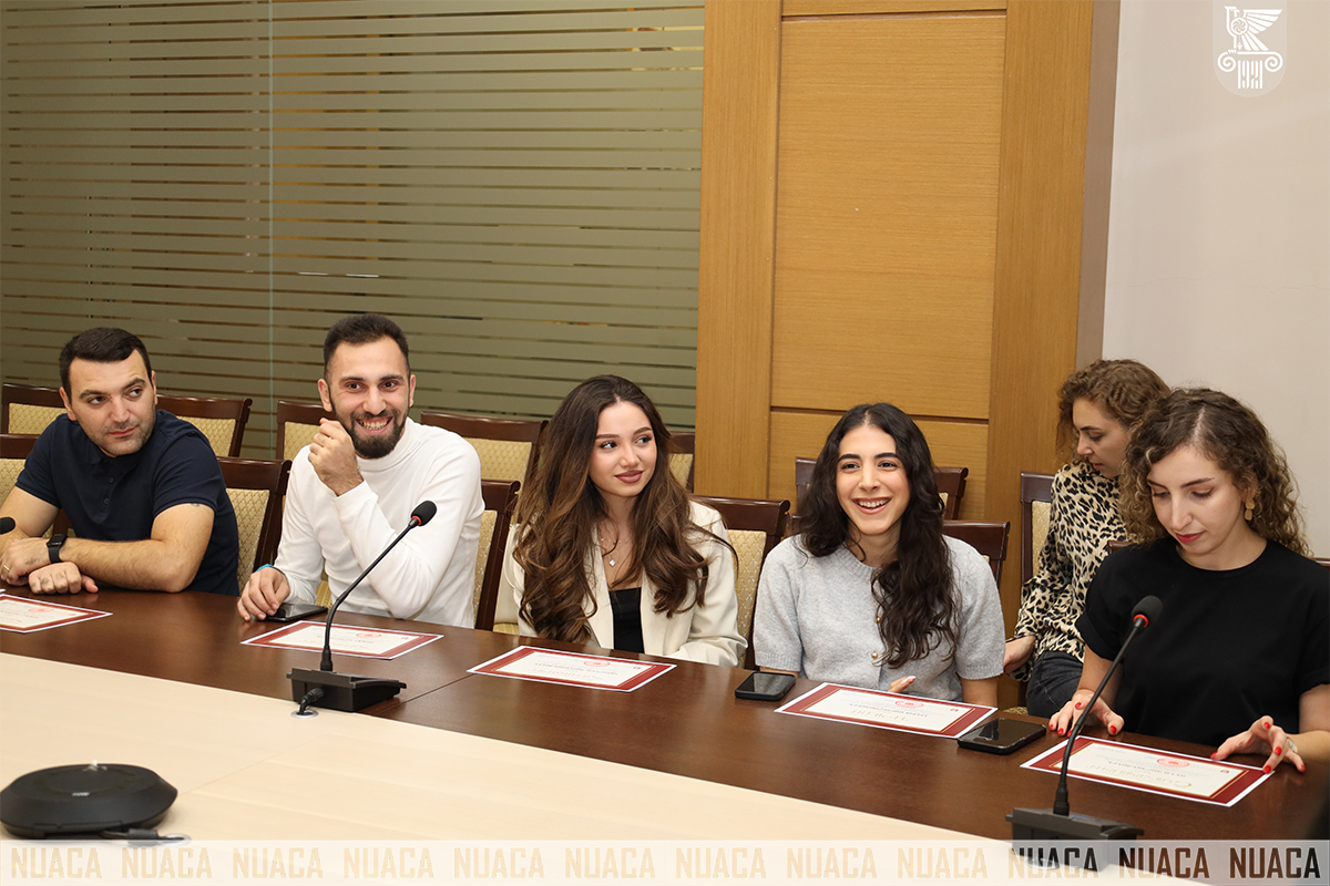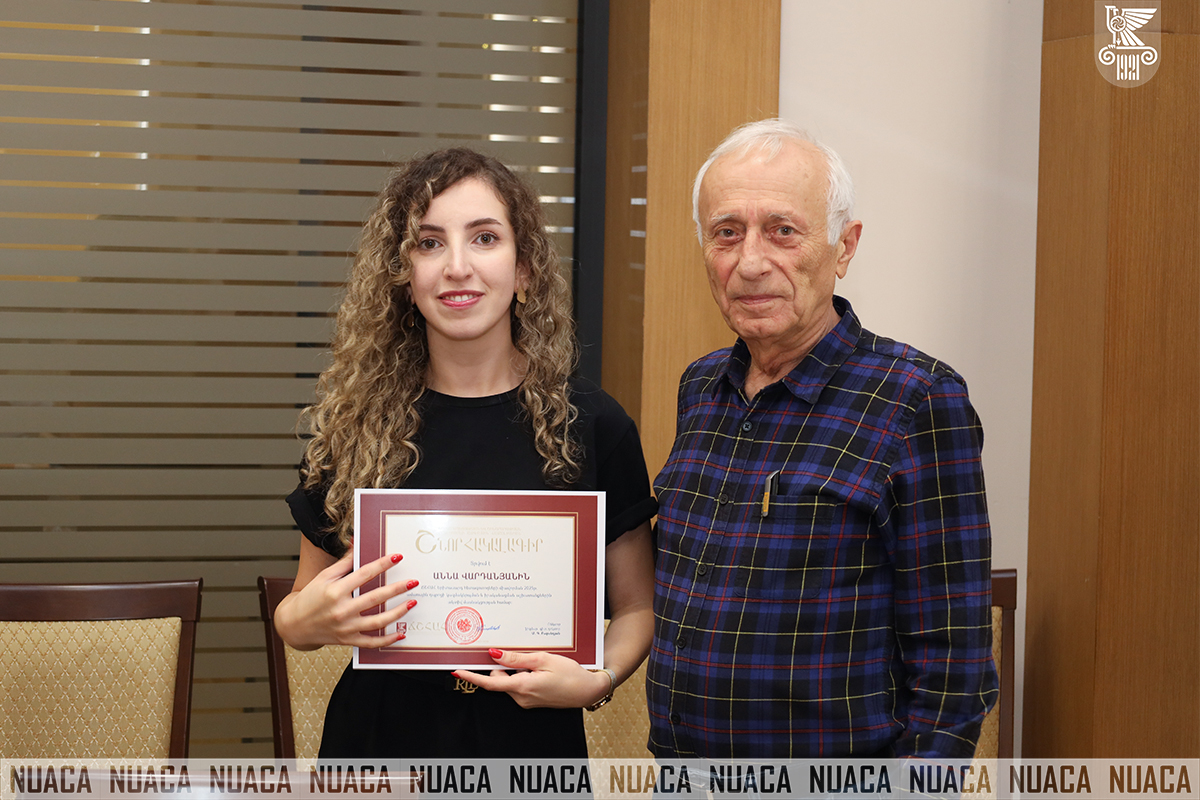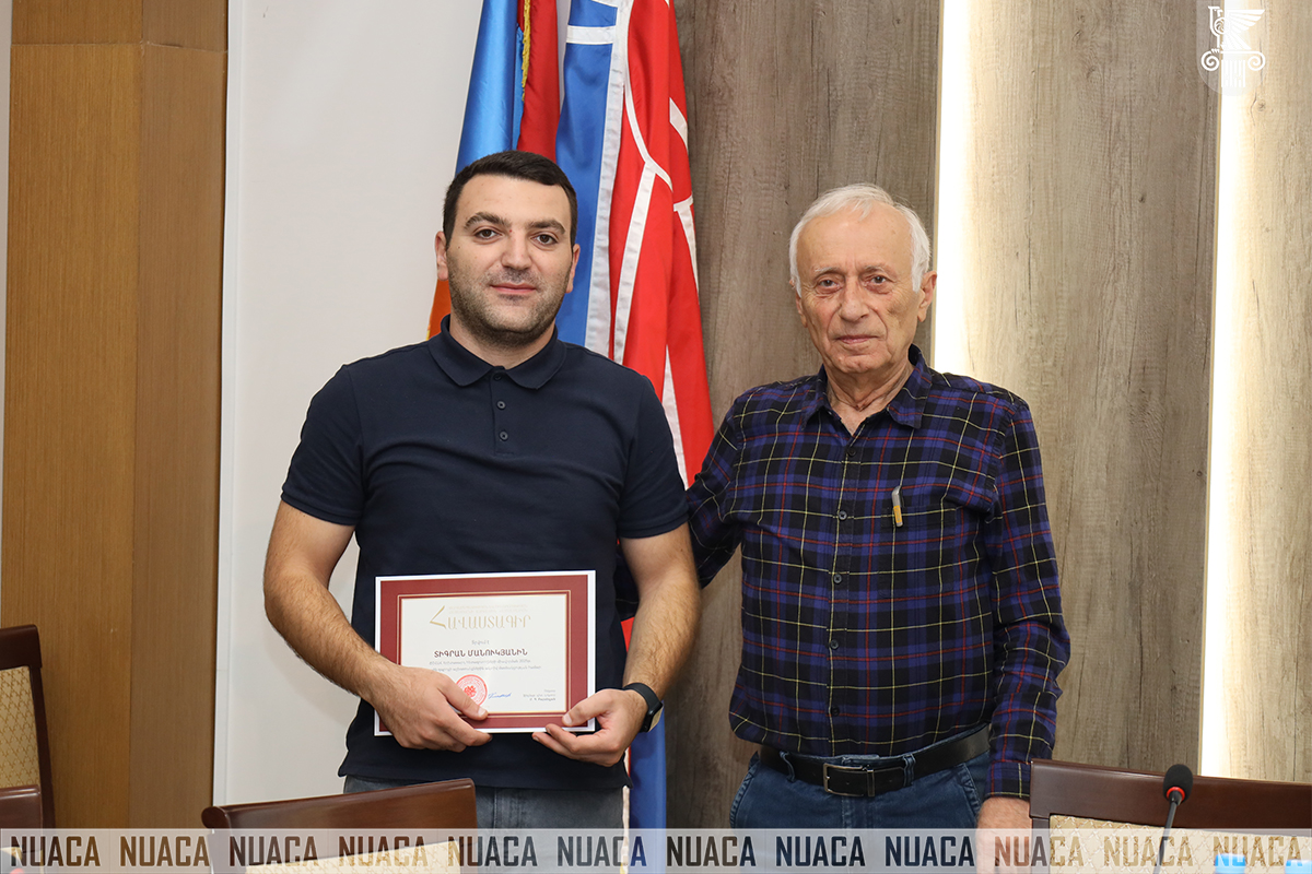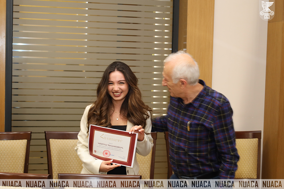 Համալսարանի գիտության վարչության ղեկավար, գիտական աշխատանքների գծով պրոռեկտորի պ\կ Սարգիս Թովմասյանը մասնակիցներին հանձնեց հավաստագրեր, դիպլոմներ և շնորհակալագրեր՝ ակտիվ մասնակցության և արդյունավետ աշխատանքի համար: